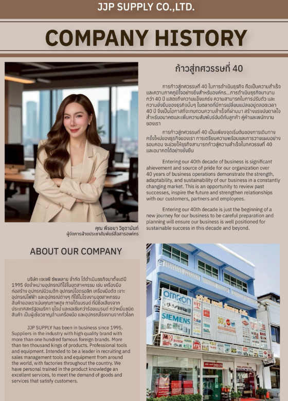 การก้าวสู่ทศวรรษที่ 40 ในการดำเนินธุรกิจ ถือเป็นความสำเร็จและความภาคภูมิใจอย่างยิ่ง สำหรับองค์กร การดำเนินธุรกิจมานาน กว่า 40ปี แสดงถึงความแข็งแกร่ง ความสามารถในการปรับตัวและความยั่งยืนของธุรกิจนั้นๆ ในตลาดที่มีการเปลี่ยนแปลงอยู่ตลอดเวลา 40 ปี จึงเป็นโอกาศที่จะทบทวนความสำเร็จที่ผ่านมา สร้างแรงบันดาลใจ สำหรับอนาคตและเพิ่มความสัมพันธ์อันดีกับลูกค้า คู่ค้าและพนักงานของเรา